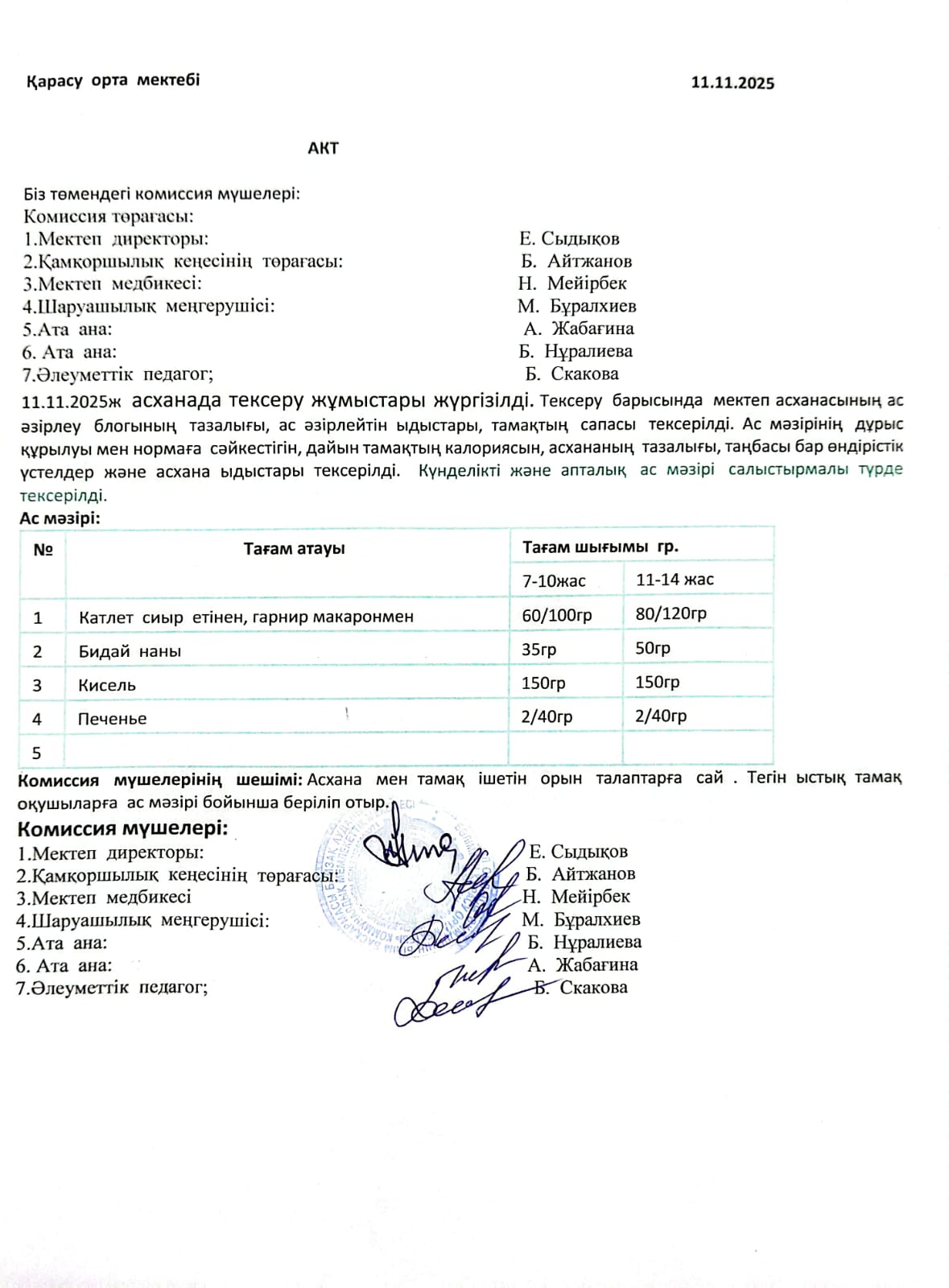 25 ноябрь 2025 Асхана тексеру