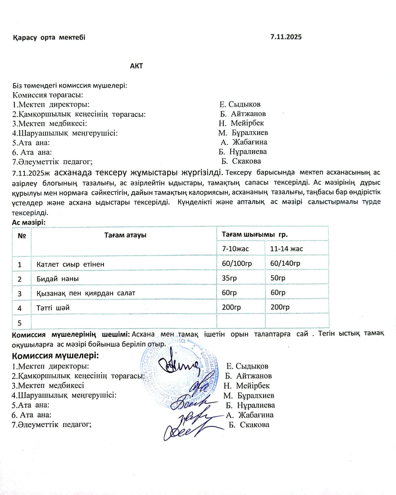 25 ноябрь 2025 Асхана тексеру