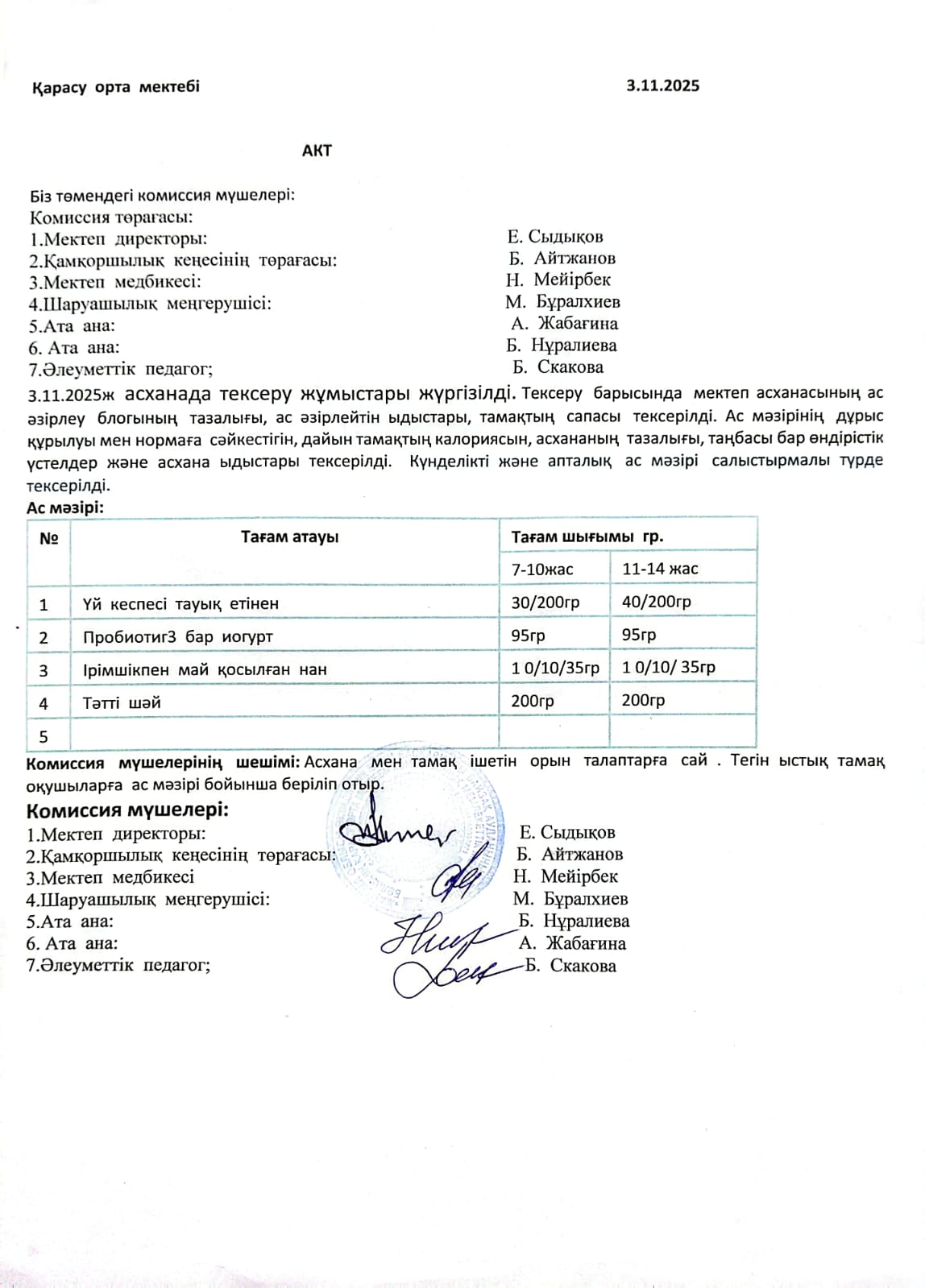 25 ноябрь 2025 Асхана тексеру